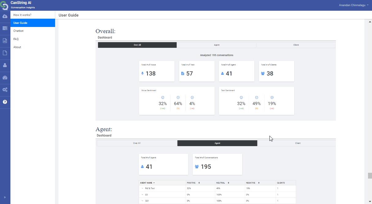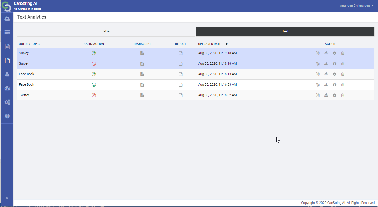 CanString Analyzer Social Media Analytics Solution provides the following; Sentiment in Customers conversations at social media channels. Extract information from Social media posting, extract Keyword and Phrases, automated notification based on Survey analysis, Extract Questions and Answers from conversational text, Conversation Insights and Dashboard Reports for Social media channels.